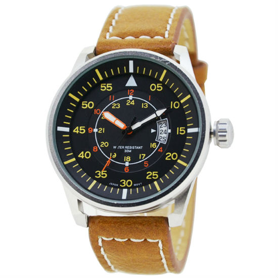 Make a fashion statement with this exquisite wristwatch. This watch comes with a stainless steel case in plain silver color. The brown watch strap comes with white stitches. Fashionable and functional, this wristwatch is suitable for various occasions from work to parties.
