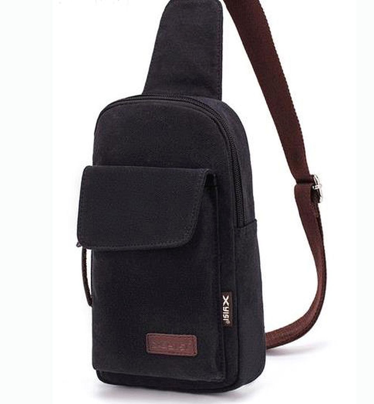 This is a fashion men style pure color pattern polyester material shoulder bag.