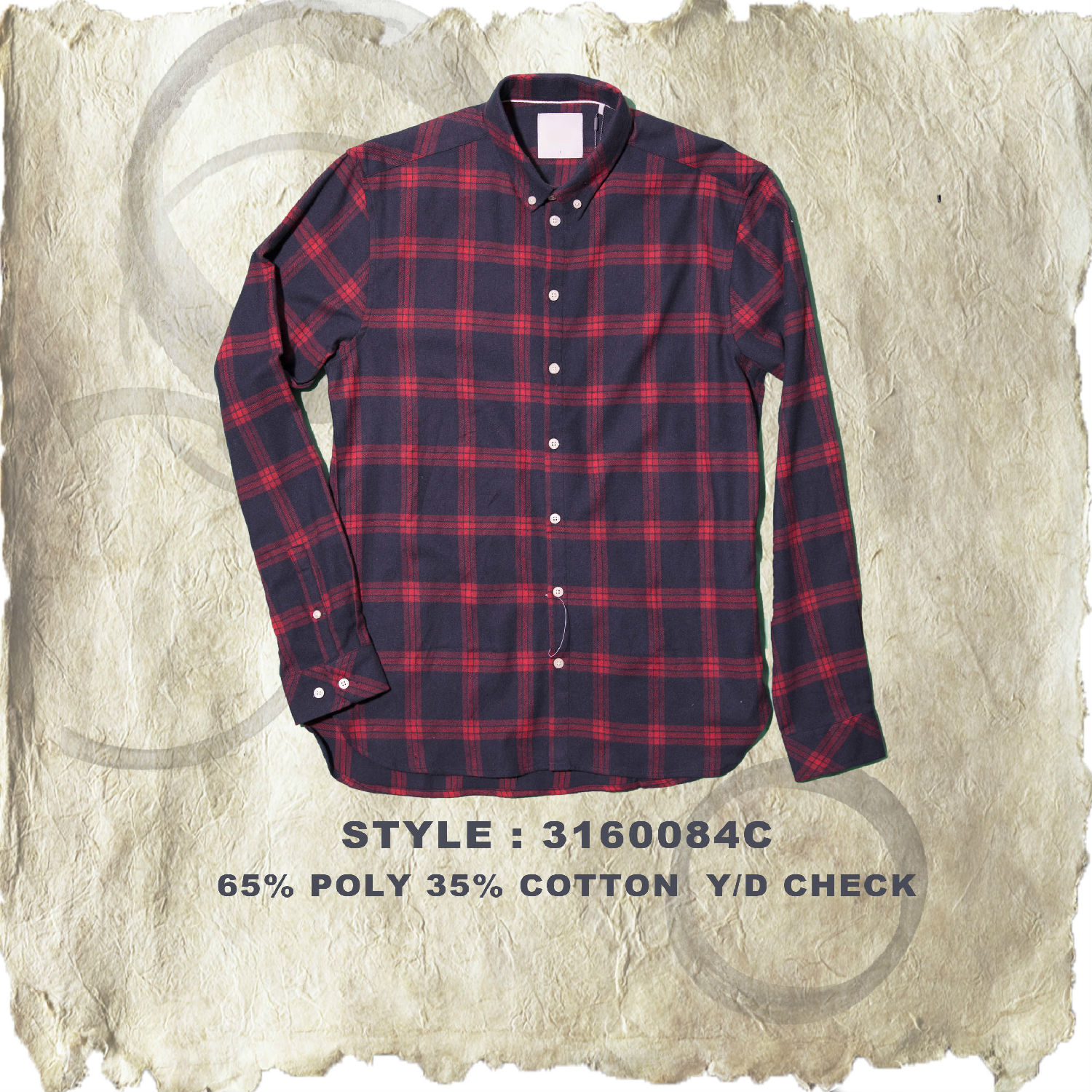 Men 65% polyester 35% cotton long sleeve y/d shirt , with garment washing , and good hand feel.