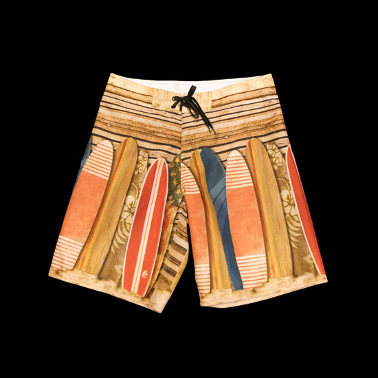 This is a pair of men's board shorts that is printed with assorted skating board patterns. It will add a touch of attractiveness and uniqueness to your look. The high-quality polyester fabric promises a long service life.