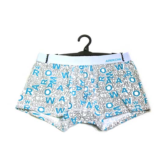 This pair of men’s boxer briefs features dense English letters in gray and blue. It is fabricated from pure cotton for a deluxe fit. There are various underwear designs available for selection.