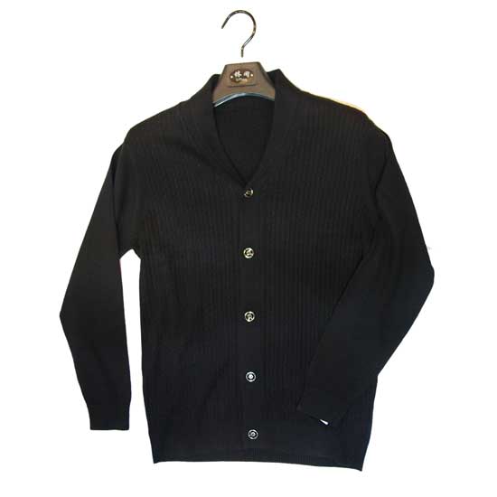 This men’s cardigan comes in black, which can match your daily outfits with ease. The ribbed details over the bodice lend extra style to the V-neck cardigan. This simple yet stylish knitwear is finished with a silvery button closure.