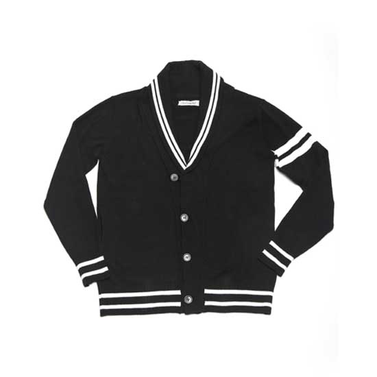 This men’s V-neck cardigan features a black and white hued design for a stark contrast. The unique button closure brings a spicy touch to the look. This cozy cardigan shows your noble taste in a low-profile way.