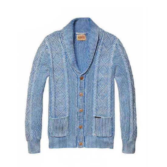 This is a men's cardigan with a fashionable and stylish design in blue. It features sophisticated knitted patterns, showcasing a touch of uniqueness. This high-quality cotton material offers enhanced comfort.