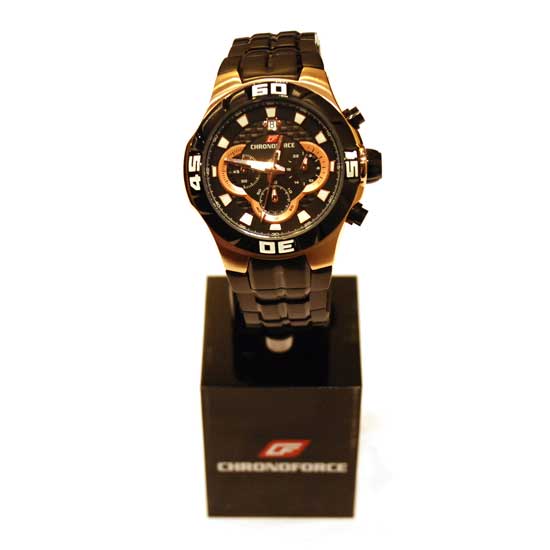The men's chronograph watch showcases a sporty and active design with its handsome stainless steel construction, promising lasting durability with resistance to corrosion. This versatile and stylish watch is certainly a great addition to enhance your style.