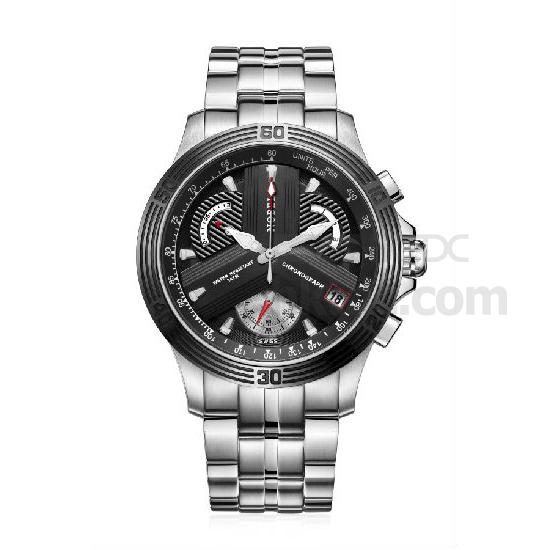 Highlighted is a men's chronograph watch with a stainless steel case and bands. The vivid subdials and hands add a splash of color to the dial. This handsome chronograph watch makes a classy addition to your watch collection.