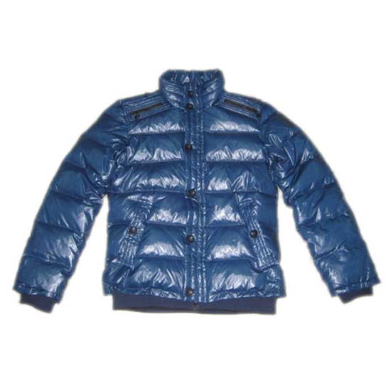 Featured is a down-filled jacket designed with a glossy nylon outer shell. It comes with a stand collar and a snap fastening front. Be prepared for the chilly cold with this down jacket.