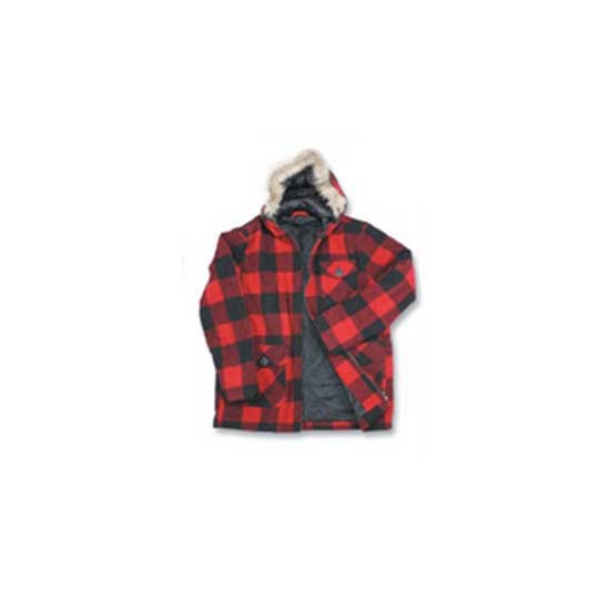 This stylish long-sleeved jacket features classic flannel patterns in contrasting black and red colors, allowing you to make an effortless fashion statement. The jacket comes with a full zip front closure and a thick hood with imitation-fur trim. Pair it with jeans for a casual, laid-back look.