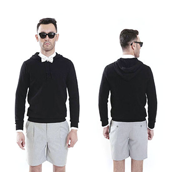 This is a men's knitted hoodie with an all-black finish. Made from 70% merino wool and 30% cashmere, this hoodie offers excellent heat retention to keep you warm. It is a simple yet stylish top for fashionable young men.