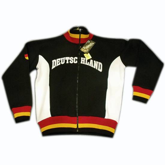 The men's jacket touts a cool-and-hip appearance in black and white. The zipped front and long-sleeve design promise to give you warmth in the cool days. The banded cuffs and bottom hem with colorful horizontal strips guarantee a blissfully comfortable fit. This men's jacket with an embroidered pattern at the back makes a must-have for your cool-weather wardrobe.