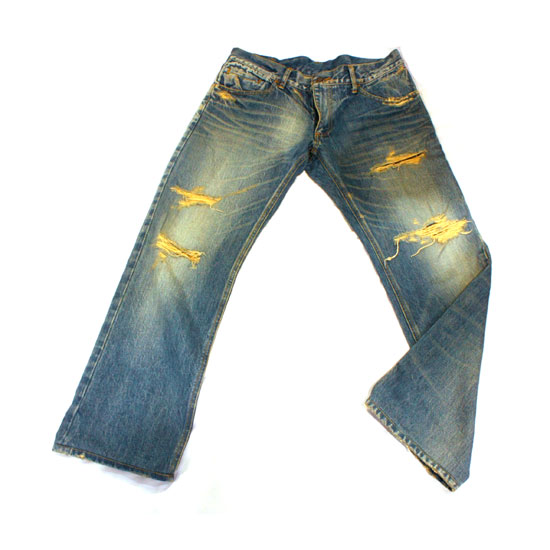 The pair of fashionable jeans is finely made of 100% denim for comfortable wearing. The worn-out details offer distinction and individuality. The crinkle patterns offer added style.