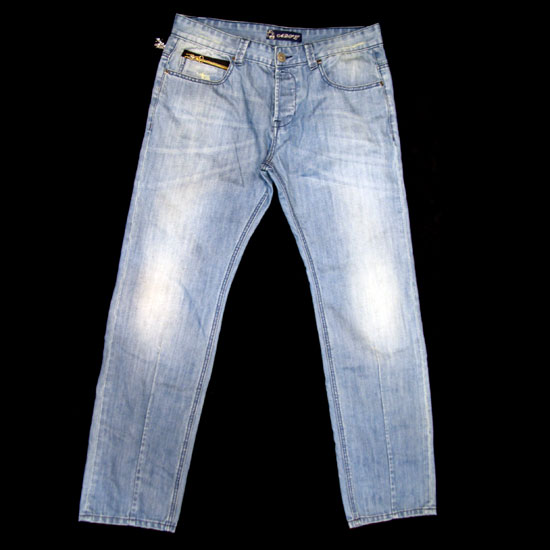 Shown here is a pair of men’s jeans coming with a straight cut. The jeans are in a light indigo color, with washed features at the legs. The casual style looks cool with any styles of T-shirts.