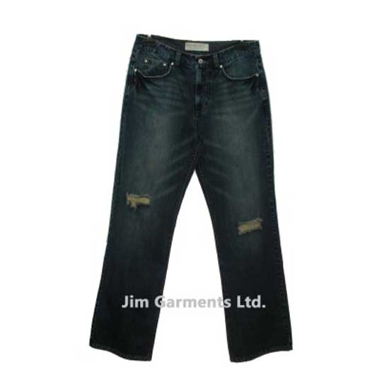 This pair of men’s jeans features distinctive wash effects and a torn design on the knees. It is fabricated from pure cotton for luxurious comfort. This pair of jeans is a must-have for men.