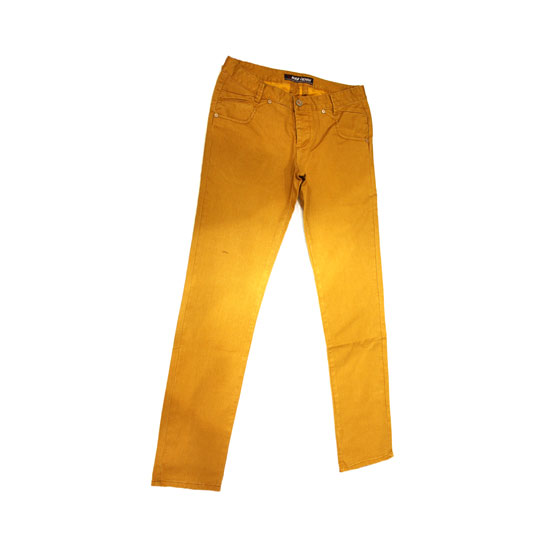 This is a pair of men's jeans in bright orange. It is a made with excellent workmanship and exquisite details. This pair of jeans goes well with different kinds of tops for a fashionable look.