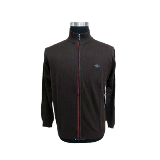 This knitted cardigan is specially designed for men. It features long sleeves, a stand-up collar and a zipper closure. This men’s cardigan is made of 100% cotton for maximum comfort.