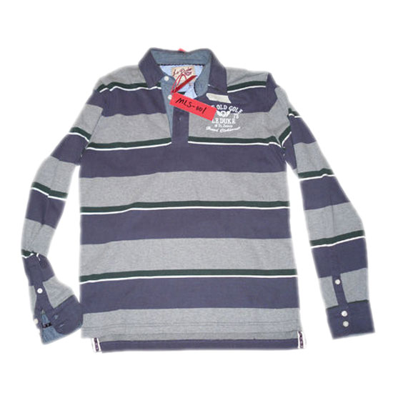 The polo T-shirt features auto-stripe yarn dye with fabric and garment washing. The 100% cotton ensures greatly comfortable fit. With long sleeves, the T-shirt is a necessary choice for men as casual wear.