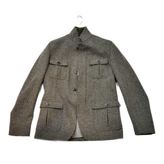 This men's long-sleeved jacket is made of 70% wool and 30% spandex. The button-up jacket in gray is accentuated by four pockets in the front for a sophisticated touch. Stay warm and look nice in this jacket in the cold days.