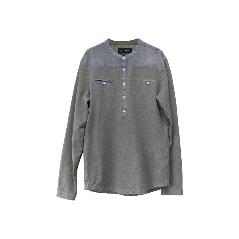 Get ready for your relaxed day with this long-sleeved pullover. It features a V-neckline, a half placket and 2 chest pockets. The front upper chest and placket is constructed from woven in distressed finish for added details. Made of quality cotton, this knitted jersey offers a light and breathable wear for spring and early summer.