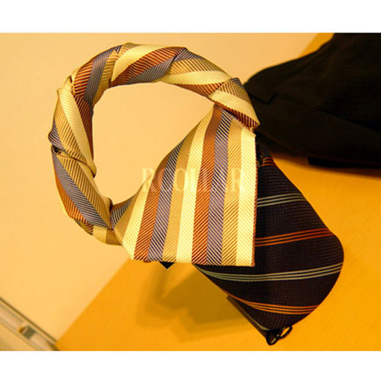 Showcased is a series of men’s necktie boasting a sophisticated style. The design features diagonal stripes in a harmonic color tone. The silky texture looks great with any designs of shirts.