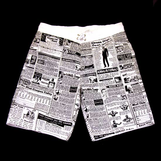 The finely tailored men's boardshorts boast a one-of-a-kind design resembling a piece of newspaper. The thoughtful drawstring waistline and wide cuffs encourage easy body movement as you engage in your favorite water sports. The soft polyester fabric ensures a blissfully comfortable fit all day long. Complete your summer wardrobe with this pair of polyester boardshorts.