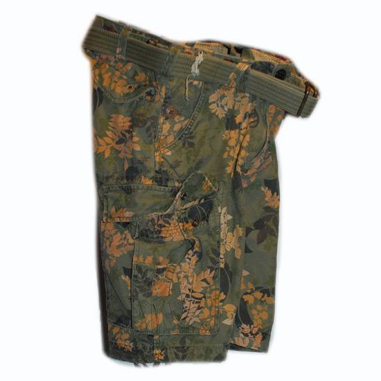 These shorts bring you a cool image for outdoor activities. The shorts are in a military green color with disruptive leaf patterns. The fabric belt adds a perfect touch to the design.