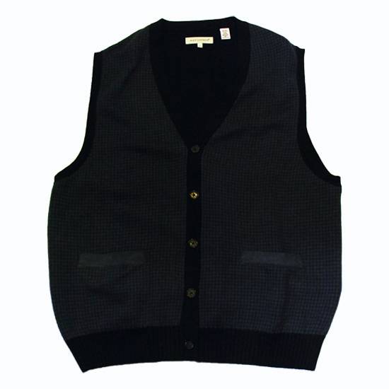 The men's sleeveless checked cardigan features V-neck styling with 5-button closure. It comes with two pockets with an accent hem. Keep warmth and look stylish with this sleeveless checked cardigan.