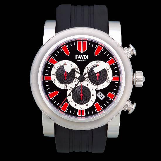 This men's sports watch features luminous red markers on the simple black dial. With the date and chronograph functions, the watch comes with a silvery round bezel and triple crowns to showcase a professional modern image. The cool design and the precise timing make this timepiece perfect for workouts and outdoor sports events.