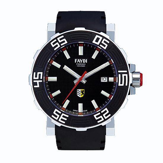 This men's sports watch features luminous white markers on the simple black dial. With the date function, the watch comes with an edgy round bezel and a bright red crown to showcase a wild vibrant image. The cool design and precise timing make this timepiece perfect for workouts and outdoor sports events.