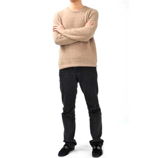 As shown is a men's sweater in sober light brown. This piece features allover knitted patterns. The sweater offers you cozy warmth while accessorizing your attire.