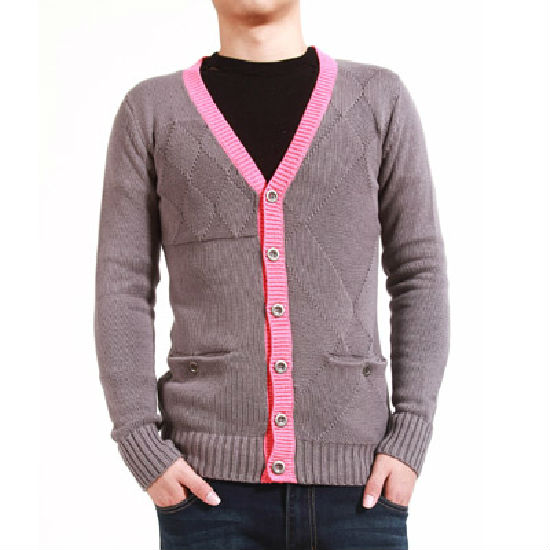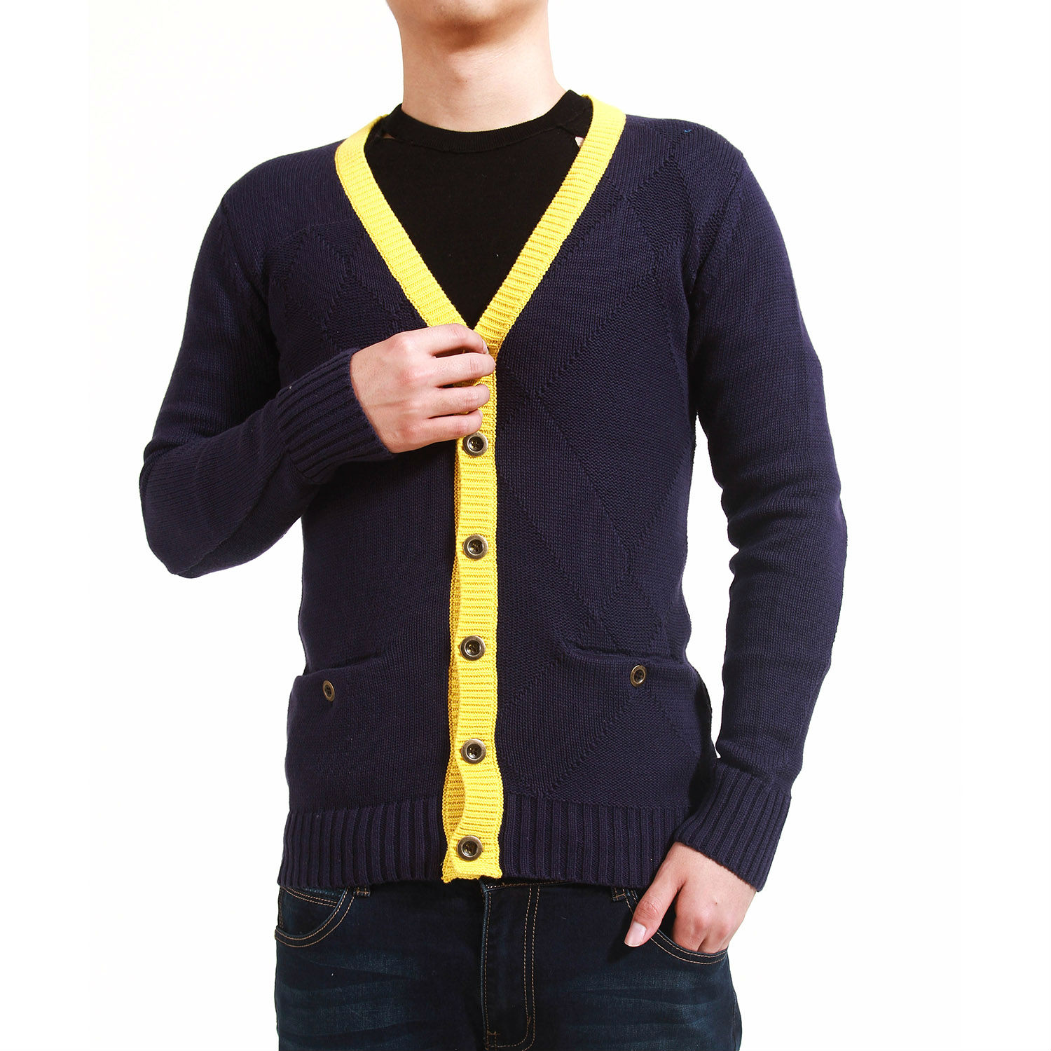 Men's V-neck long sleeves buttons front knitted cardigan.
