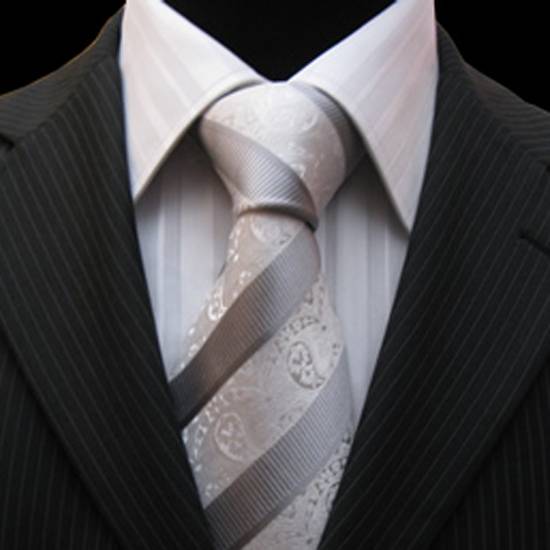 - Colors are added to the clothing and the wearer looks more smart with this silvery grey tie.