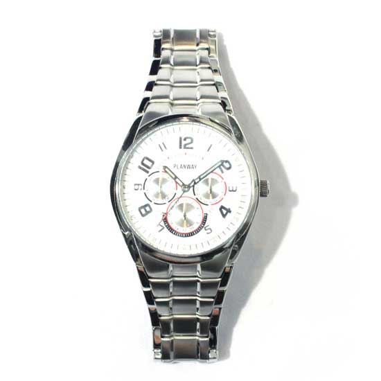 This is a well-designed quartz analog watch coming with a stainless steel case and bracelet, offering excellent durability. The white dial has black Arabic numbers and markers. The watch comes with 3 sub-dials and luminous hands for added convenience. This elegant timepiece is a perfect men's accessory for everyday outfits.