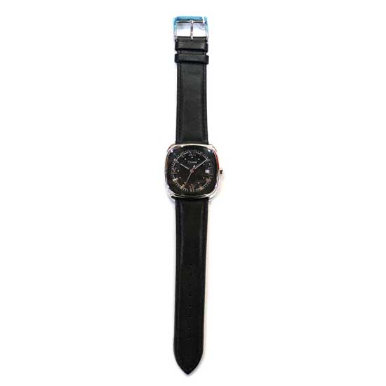This is a men’s quartz analog watch with a round-shaped dial, three hands and accurate markers. It comes with a black leather watch band for a luxurious touch. This watch comes with a stylish black design, which can match your outfits easily.