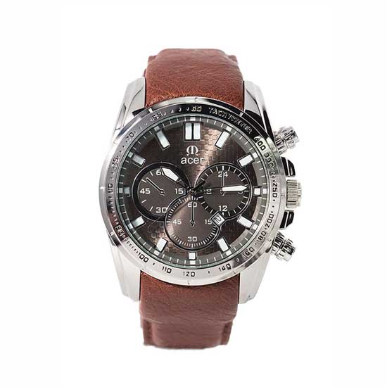 This is a men's watch featuring a sophisticated dial with three sub-dials and a date display. It has a silvery case in a round shape with marks on the bezel. This refined watch is a great addition to your watch collection.