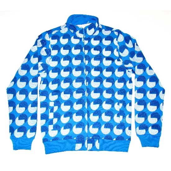This men's zipper jacket features geometric patterns of blue and white. This jacket is comfortable and lightweight. Its light blue color flaunts a youthful charm.