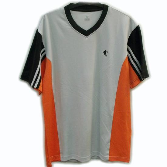 The men's T-shirt has a V-neck and short-sleeve design, making it remarkable for hot days. The gray color matches flawlessly the black and orange colors, adding a sense of vitality to the overall appearance. This fashionable T-shirt makes a must-have complement for your summer wardrobe.