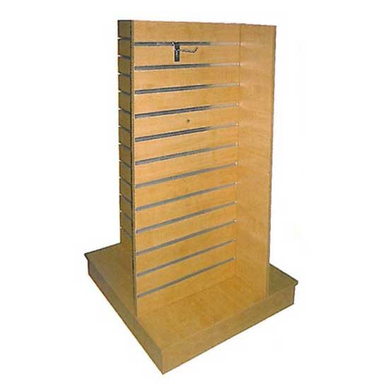 The wooden slatwall display is designed to be used in shops and supermarkets. The display comes with 4 sides to show products and can be moved easily. The space-saving design makes it an ideal selection.