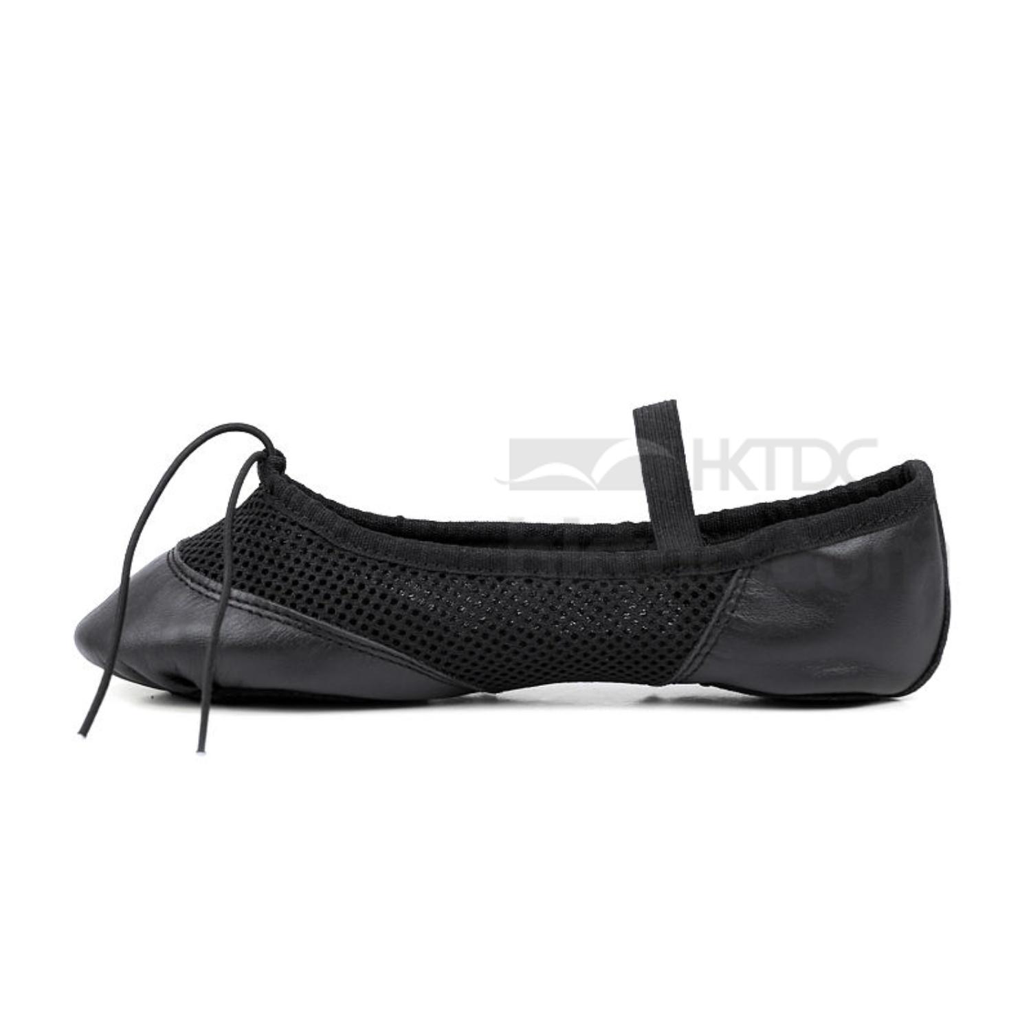 Light weight in design and crafted with ultra-soft leather, this pair of ballet shoes offers a flawless fit of full-toe coverage. Its elasticized binding further eliminates the need for a drawstring and gracefully wraps your feet in a sweet and pleasing flair.