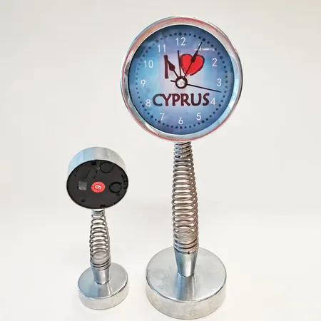 Desc: Metal Alarm Clock with springMaterial: Metal+plasticSize: small size: 4*1.8*13CM, big size: 7.5*3.5*21CMDesign: OEM design or according to the customer's requestPacking: 1pcs/box