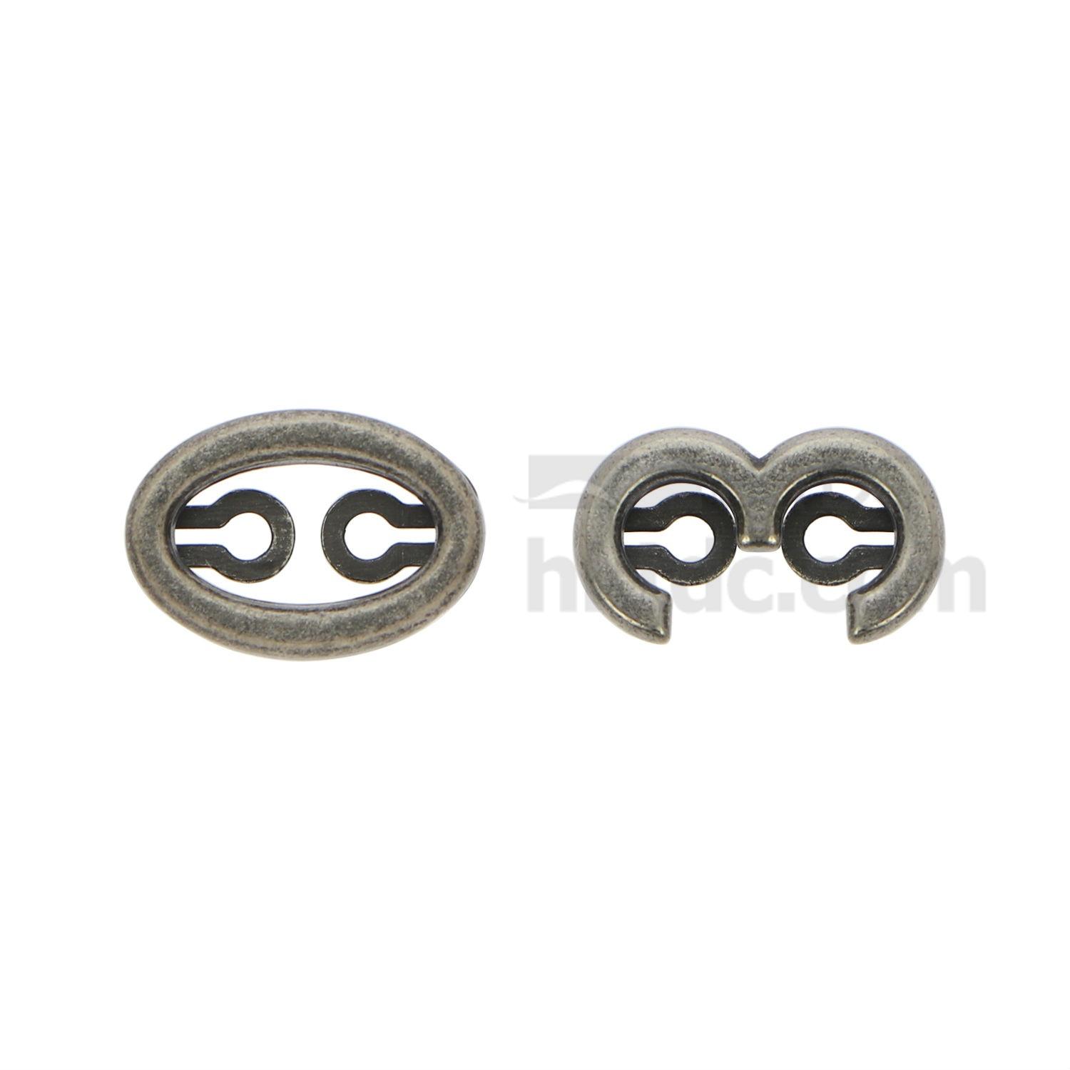 Decorate shirts, jackets, bags, shoes and so on with this alloy badge. It has an oval shaped frame with plated finish and has two loops in the center for installation. This alloy badge flaunts long-lasting durability and offers a convenient way to show logos on your products.