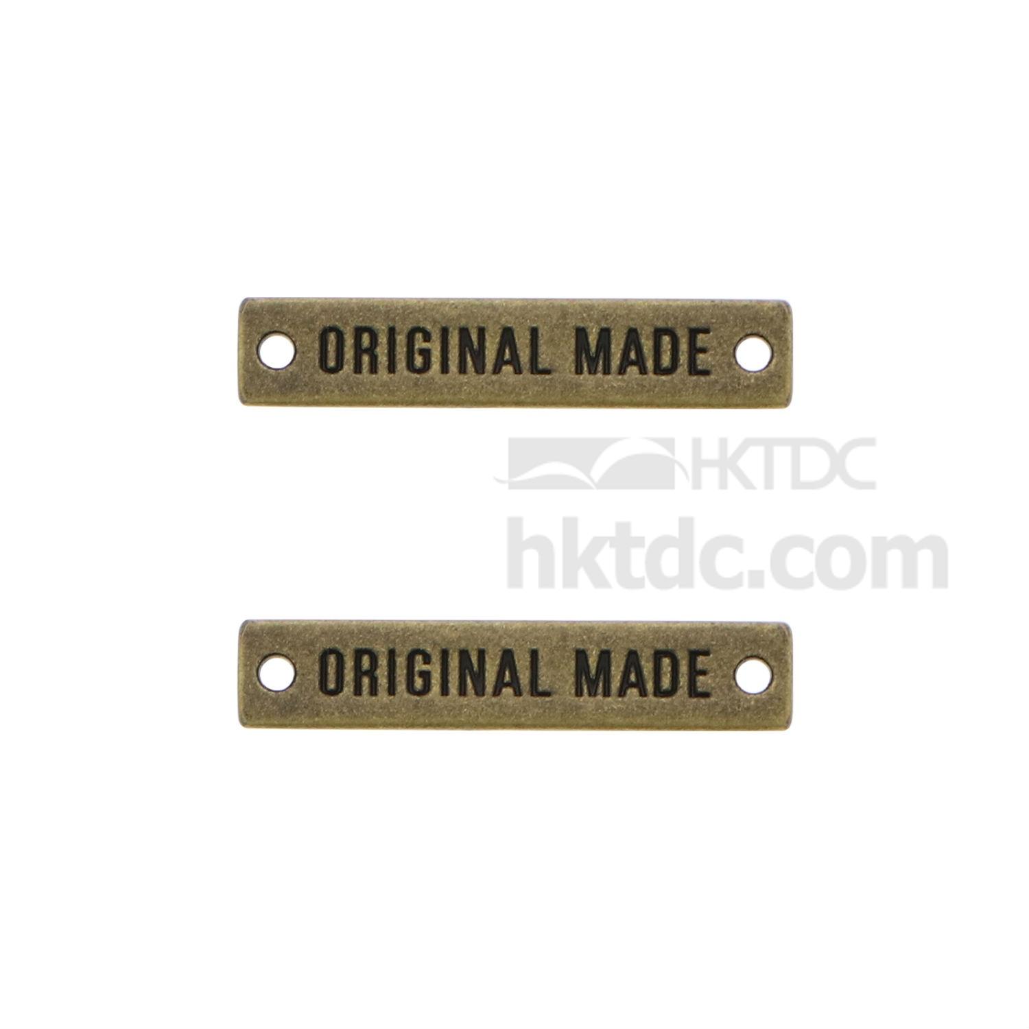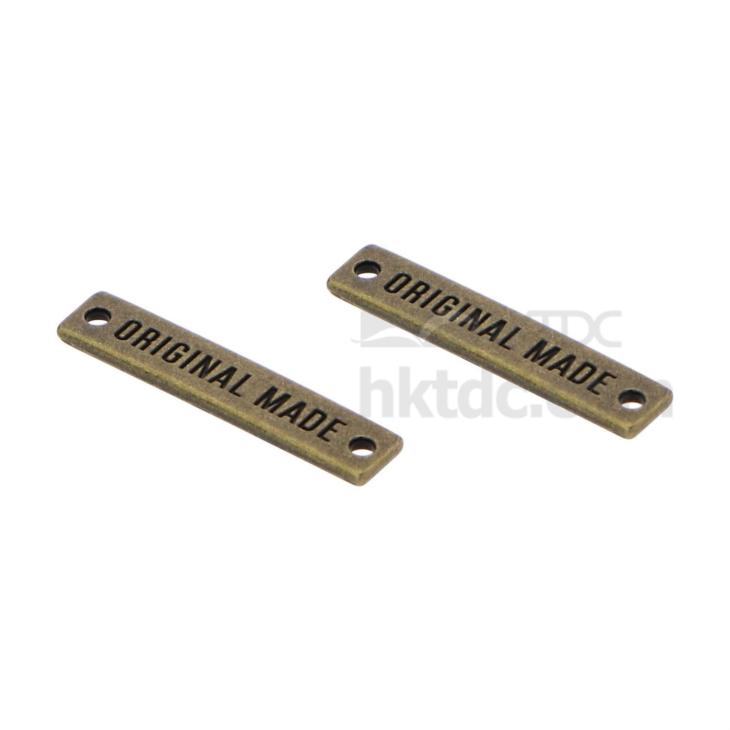 Show your brand name on your merchandise with this metal badge. It is rectangular shaped and can be engraved with brand names on the top. This metal badge has two holes on the sides and is easy to sew on fabric surfaces.