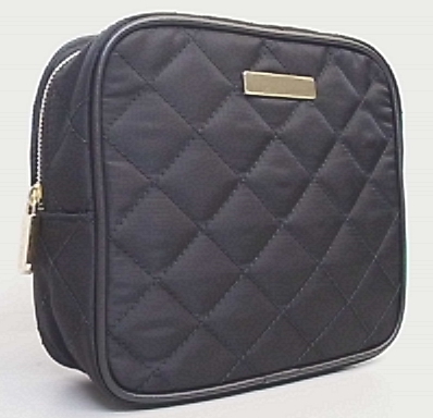 Metal badge quilting nylon with matt finish PVC cosmetic bag.