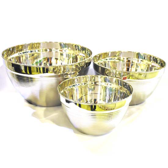 The high-quality metal bowl flaunts a royal sheen. This excellent metal construction boasts a stylish striped pattern. Add this to your home for function and style.