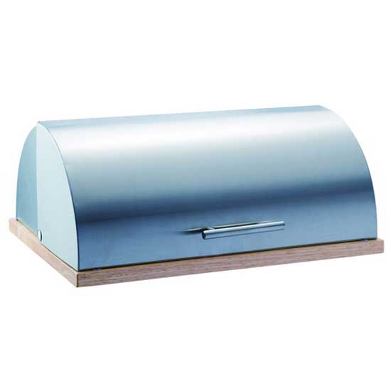 This metal bread box comes with a rectangular wooden base. The slide-and-open design is functional and convenient to use. The top-quality stainless steel handle is sturdily attached onto the front area for the longest serving time.