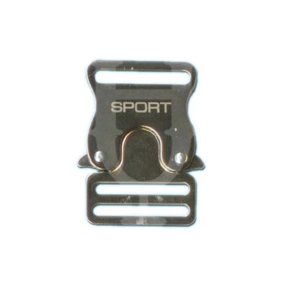 Featured here is a buckle that features a modest yet sporty design. The buckle is constructed of quality metal to prolong the lifespan and improve its durability. The buckle is suitable for a wide range of products.