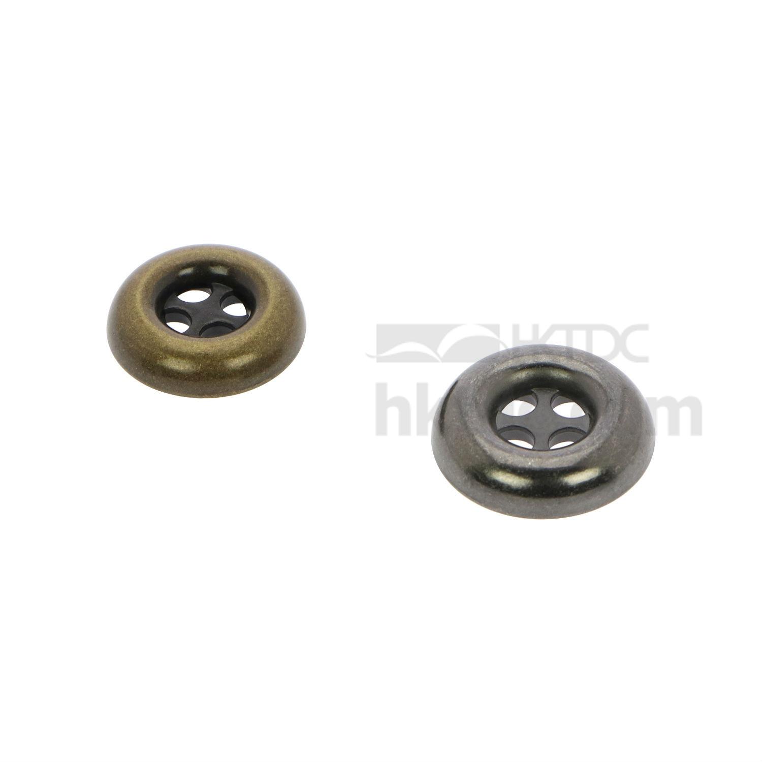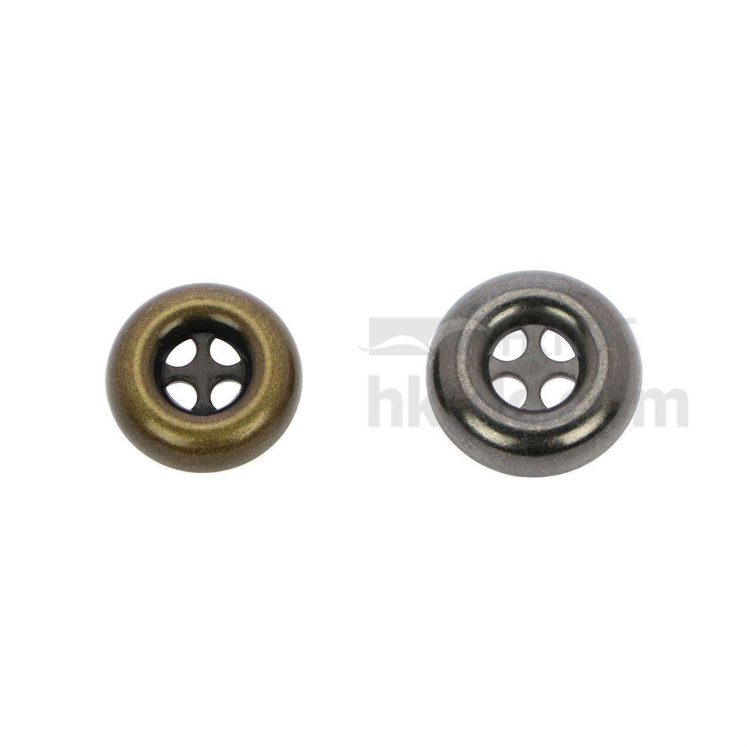 Add a vintage touch to garments or art projects with this alloy button. It comes in a compact round shape and has a rustic metallic toned surface. This alloy button has four holes in the center for sewing and provides secure and reliable fastening.