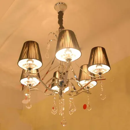 This 6-light chandelier features slightly curved arms with a chrome finish. The top-quality crystal decoration adds a dazzling touch. The shiny alloy frame is polished for added shininess, making this metal chandelier give a splash of elegance.