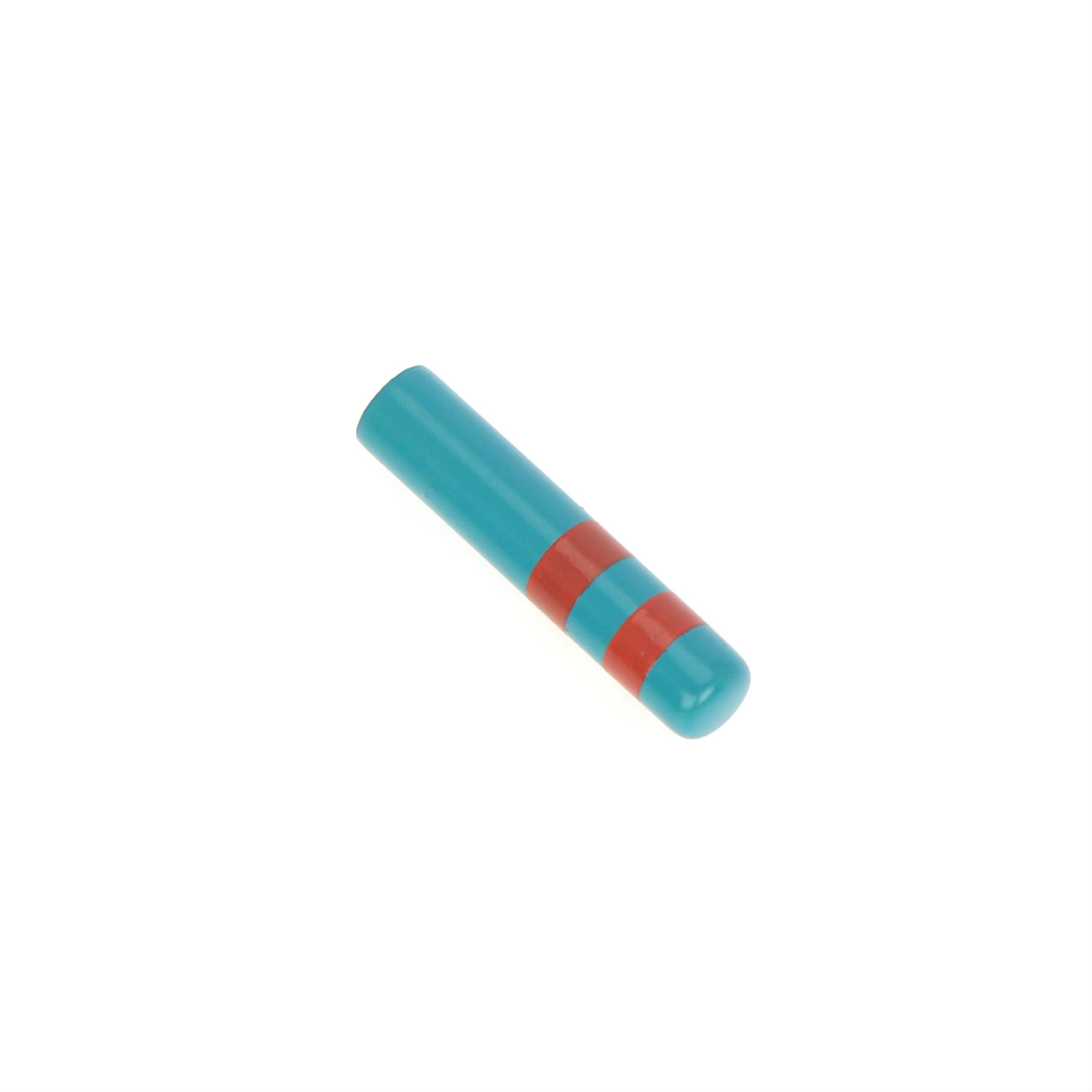 This cord end cap is made of brass and features a silk printed exterior. It comes in a cylindrical shape and is adorned with stripes in contrasting colors. The cord end cap is easy to attach and is excellent as an accessory for clothing, bags or jewelry.