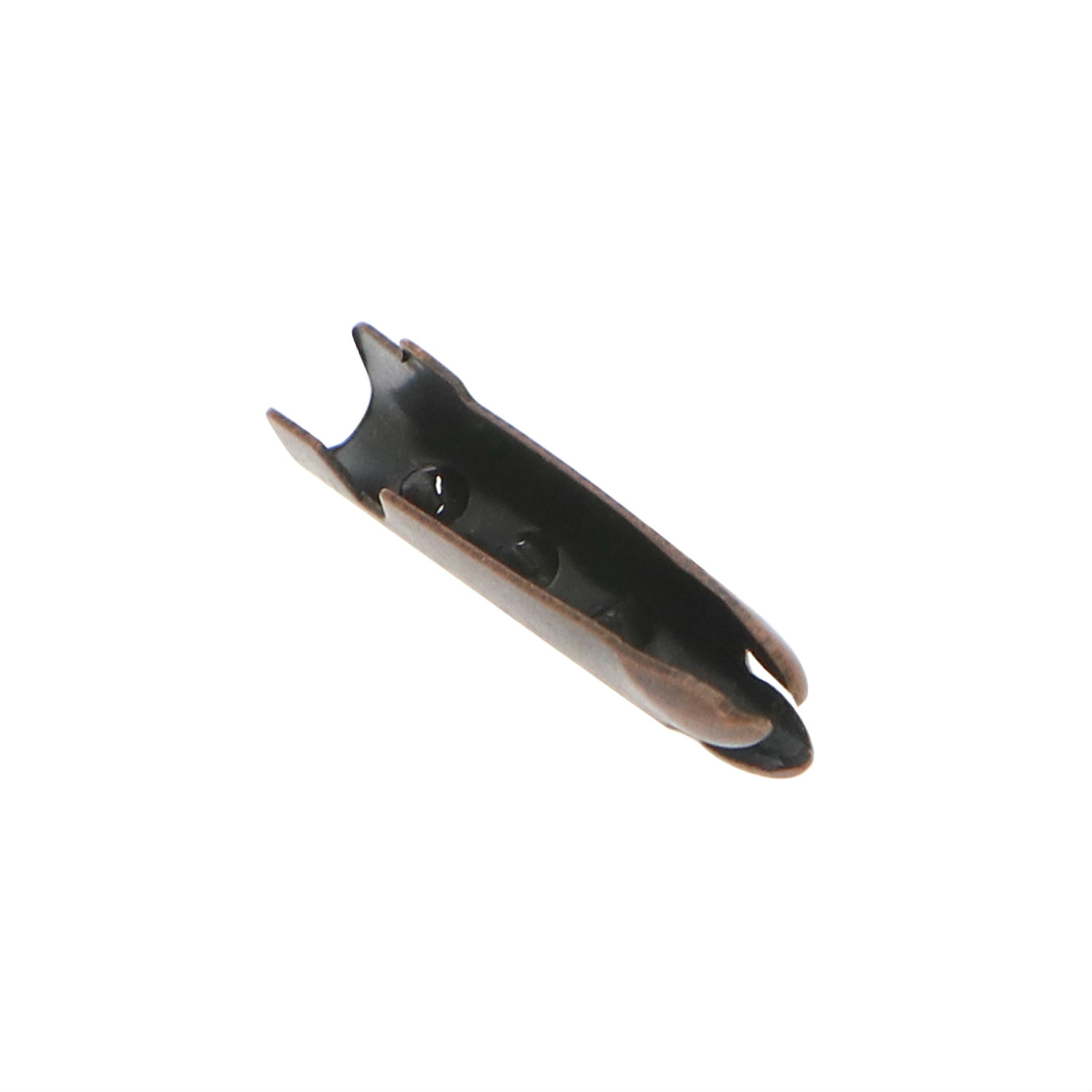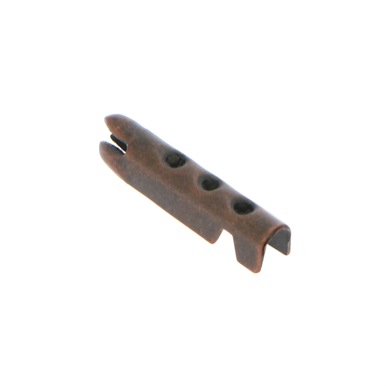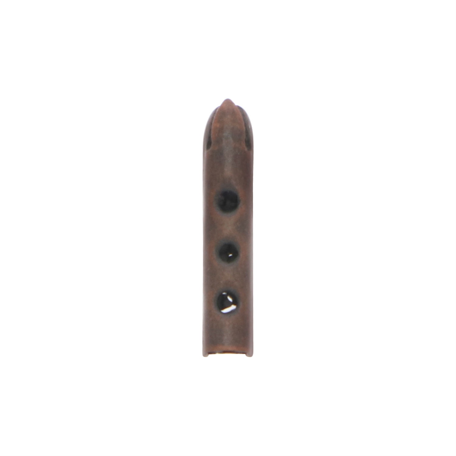 Guard your cord ends with this brass aglet. Showcasing a rusty profile, the plated cord end features a bullet-shaped silhouette with a clean row of precisely drilled holes highlighted on its straight and slender body. A highly versatile haberdashery in the fashion business, it can be used to craft no matter shoelaces or jewelry cords.