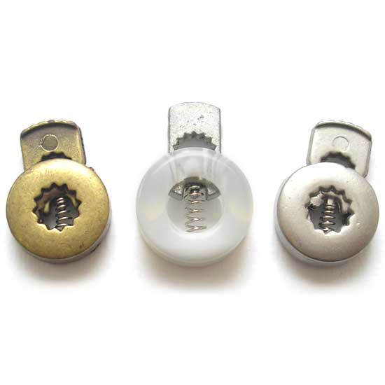 Shown here is a cord lock made of metal. It provides reliable performance with a quality spring. This metal cord lock is suitable for garments and handbags.